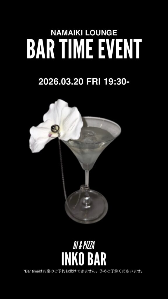 3/20(金)Namaiki Lounge By fqtq 2026-03-142026-03-14 VENUE Namaiki Lounge(中目黒) 19:30 〜 23:00 Google Map >> DJ 栗原みどり(YMCK) FQTQ Hideo Oi 弾き語りLIVE Yokemura(YMCK) バーテン inko 19:30-20:00 FQTQ 20:00-20:30 栗原みどり(YMCK) 20:30-21:00 Hideo Oi 21:00-21:30 Yokemura(YMCK)弾き語りlive 21:30-22:00 栗原みどり(YMCK) 22:00-22:30 Hideo Oi 22:00-23:00 FQTQ